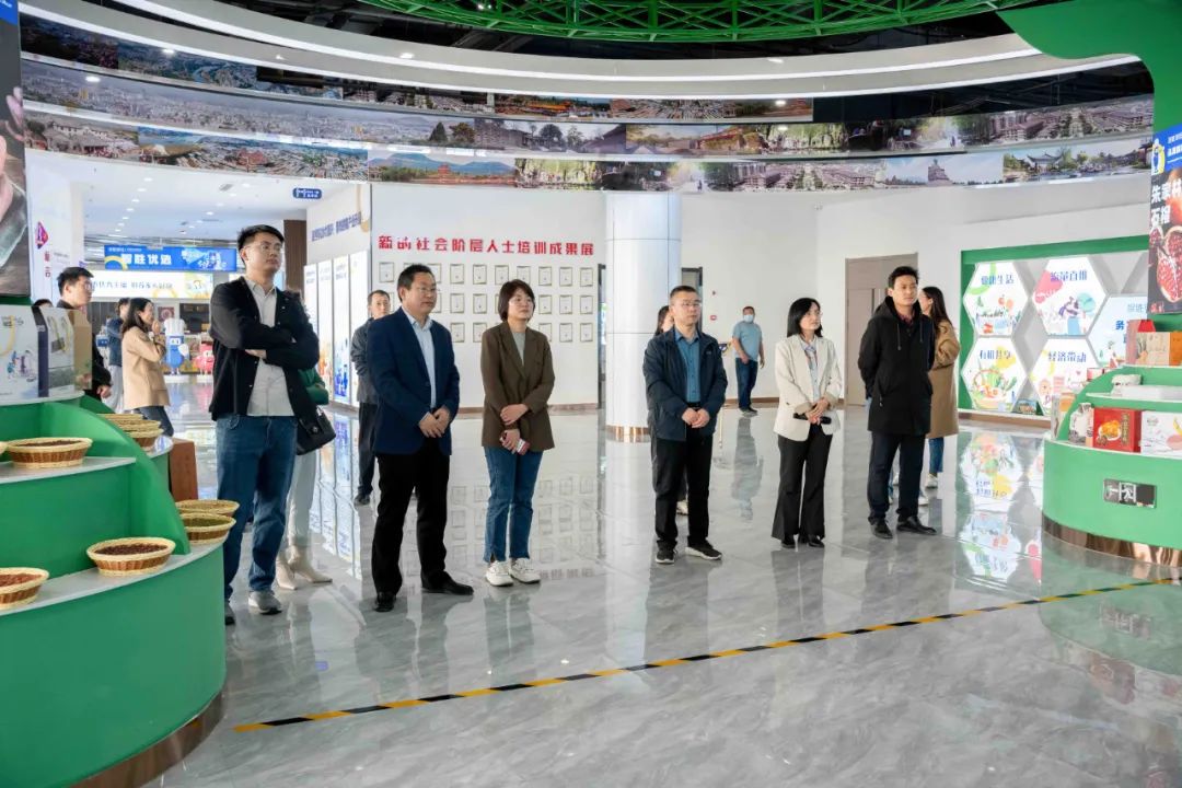 在张庄镇智胜锦钰直播电商基地,考察组一行观看了《电商赋能·平台运营合伙模式》专题片,参观了选品大厅、专业直播间、“新联会之家”等。